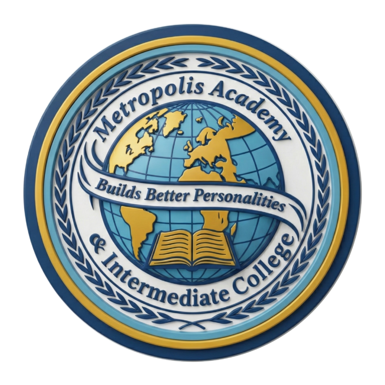 The globe in the logo represents Metropolis World which is full of knowledge, wisdom and awareness. It shows that the institute emphasizes on international standards and aims to prepare students for a globalized world.